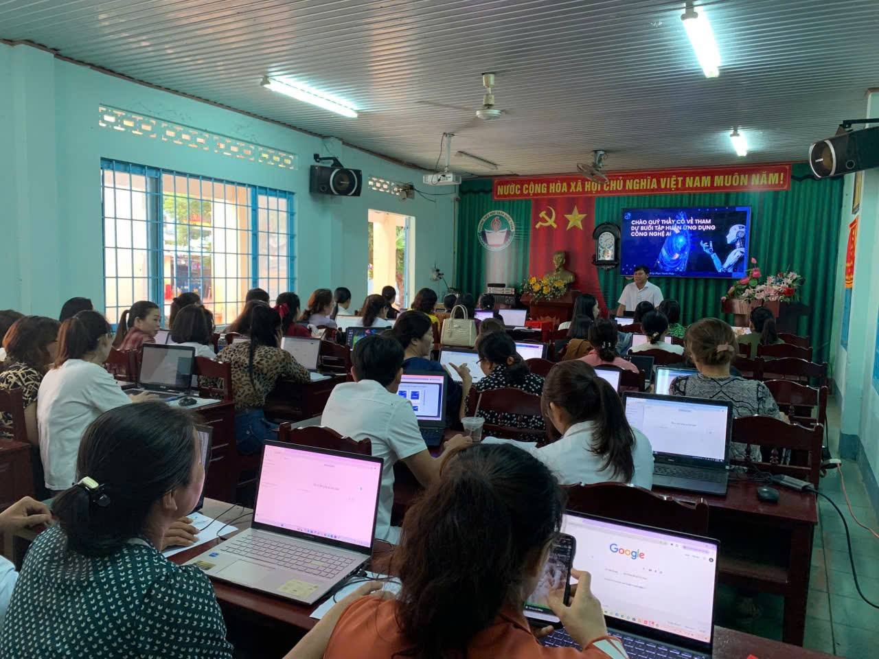 Ngày 21/8/2025 Trường tiểu học Trần Quốc Tuấn đã tổ chức buổi tập huấn ngày 1: Ứng dụng Al trong thiết kế giáo án và bài giảng. Buổi tập huấn diễn ra sôi nổi, các thầy cô tham gia thực hành nhiệt tình với mong muốn nâng cao năng lực chuyên môn sẵn sàng phục vụ cho năm học mới.