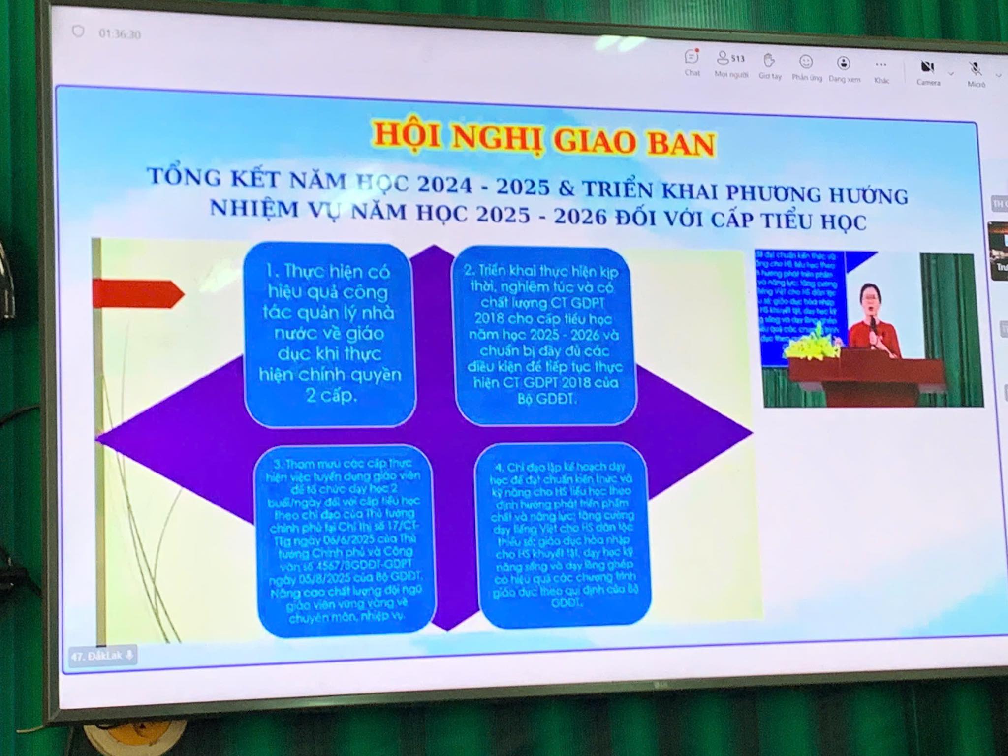 Tham gia Hội nghị giao ban tổng kết năm học 2024-2025 và triển khai phương hướng, nhiệm vụ năm học 2025-2026 cấp tiểu học. ❤️ 456 HT của Tỉnh tham gia trực tiếp và 456 điểm cầu tại các trường Tiểu học trên toàn tỉnh.